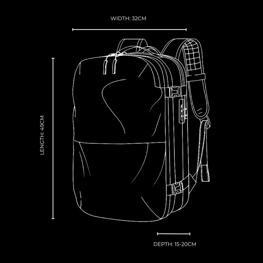 Планирате по-дълго пътуване или просто ви трябва повече място? SmartBag Airpack се разширява до цели 38 литра, което я прави сравнима с малък куфар. Побира дрехи за 2 до 5 дни, козметика, зарядни, аксесоари и дори обувки – всичко в един компактен и стилен формат. Идеалният избор за бизнес пътуване, уикенд екскурзия или командировка.