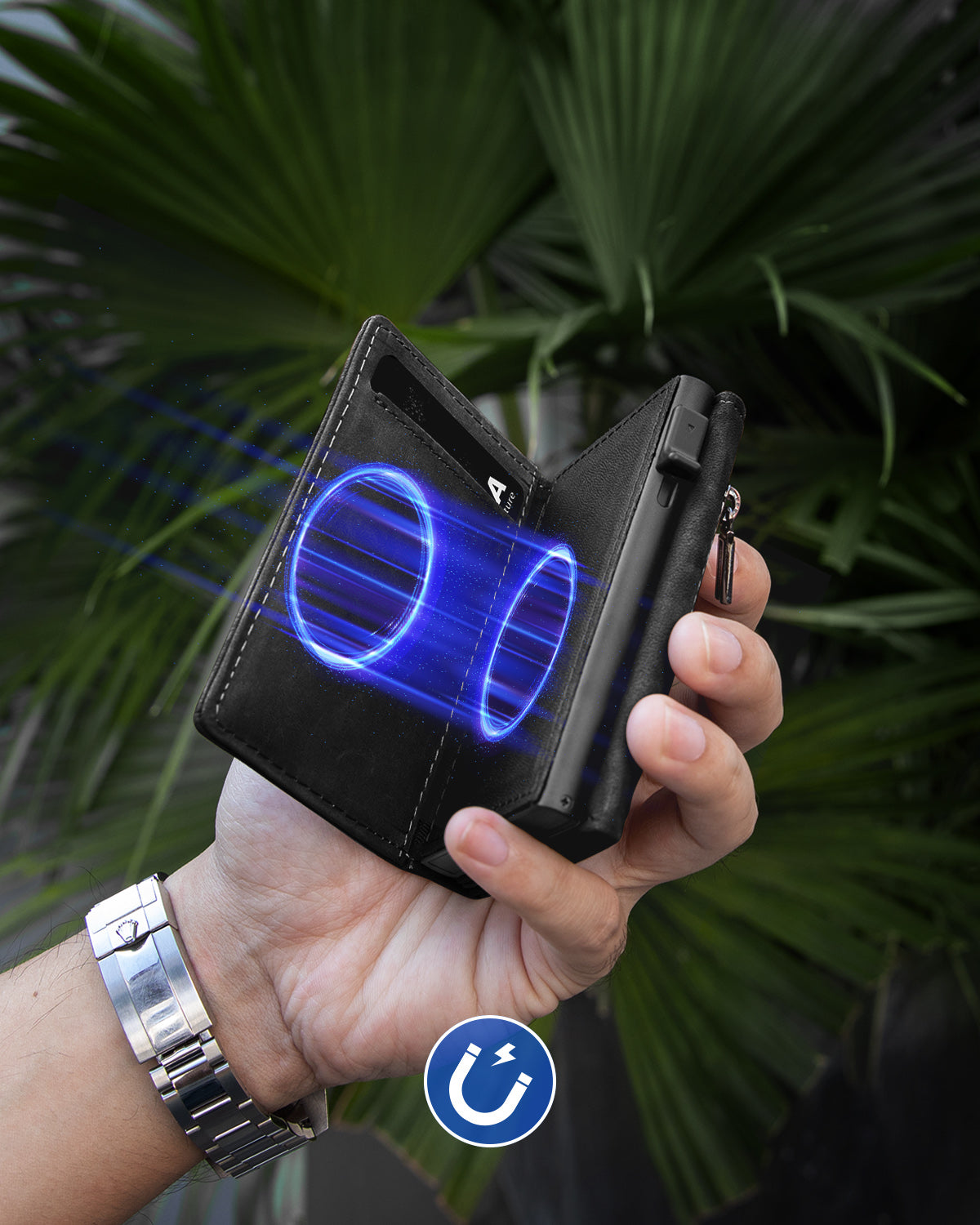 Няма нужда от закопчаване на копчета или нещо, което да пречи на отварянето или затварянето на смарт портфейла.