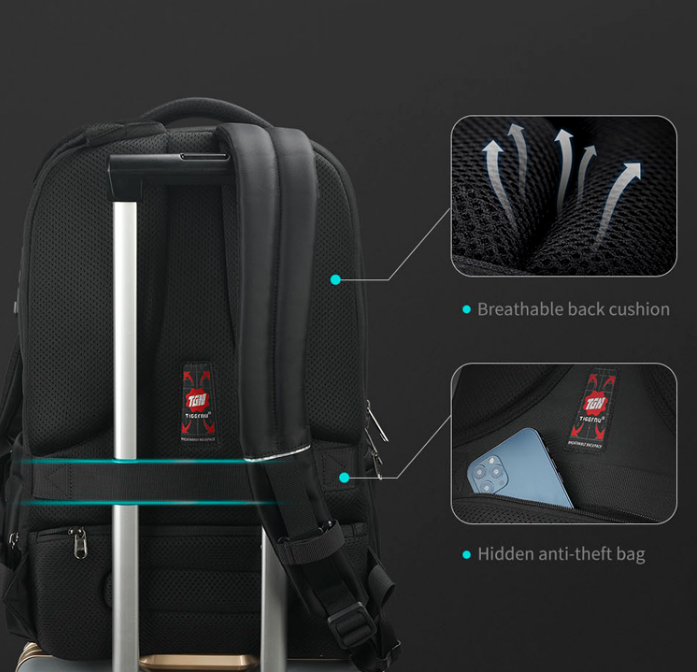 Tigernu Bizzare има омекотен гръб със специална дишаща мрежа, която позволява циркулация на въздуха и предотвратява запарване. Ергономичният дизайн облекчава натоварването върху гърба и раменете, дори когато носиш тежък товар през целия ден.
