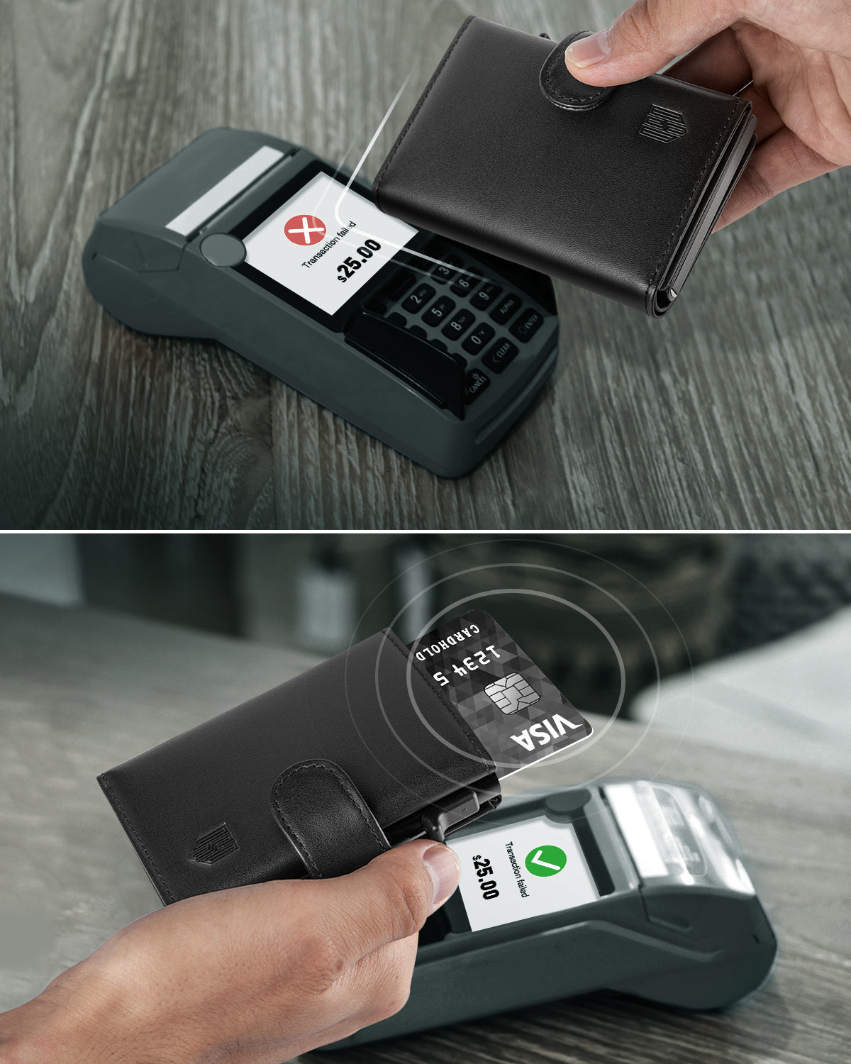 Това е защита за вашите карти от скенери и крадци. Не позволява на външни сигнали да стигат до картите, когато те са прибрани в портфейла и ги защитава.